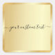 Su texto personalizado Caligrafía elegante Script Glamuroso Plantilla Dorada Sticker cuadrado.