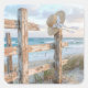 Pegatina Cuadrada Sun Hat On a Beach Fence