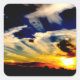 Una hoja de pegatinas con una foto de alto contraste de una puesta de sol.
