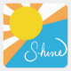 Sunshine Rays of Happiness de @ Cathy Thompson. Gran sol abrasador con las palabras positivas "Brilla" en el frente. Los colores son naranja, azul y blanco.