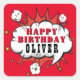 Pegatina Cuadrada Superhéroe discurso cómico Bubble Boy Feliz cumple