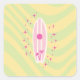 Pegatina Cuadrada Surf amarillo y rosa, arte playero, perrito