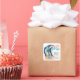 Pegatinas de cumpleaños de niños con tema de surf (o sellos de sobre para invitaciones) que presentan una gran ola de acuarela, tablas de surf y estrellas de mar en la playa con tipografía "Surf's Up" en una fuente retro genial. Los colores tropicales (coral, amarillo, turquesa y azul marino) funcionan muy bien para niño o niña y el nombre y la fecha se pueden personalizar. Arte de KL Stock.