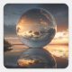 Pegatina Cuadrada Surreal Reflective Sphere With Sunset Clouds Over