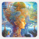 Pegatina Cuadrada Surrealista Woman Landscape Fantasy Art
