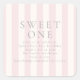 Pegatina Cuadrada Sweet Stripes Invitación rosa de primer cumpleaños