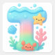 Pegatina Cuadrada "T" Cute Letter - Underwater Sea Creature