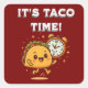 Pegatina Cuadrada Taco Time – Cute Happy Taco with Clock