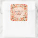 Pegatina Cuadrada Taller de boda floral naranja acuarela