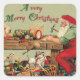 Pegatina Cuadrada Taller de Papá Noel Vintage