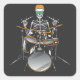 Halloween Skeleton Rock Hand Drummer Jugando Drums Diseño gráfico Gift Square Pegatina Classic Colección Clásica.