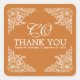 Pegatina Cuadrada Tangerina y Boda Blanco Gracias Monograma