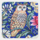 Pegatina Cuadrada Tapiz de búho William Morris, azul beige y cobalto