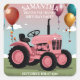 Pegatina Cuadrada Tarjeta de cumpleaños de Tractor Rosa Cute