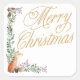 Pegatina Cuadrada tarjeta de Navidad con zorro botánico personalizad