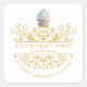 Una elegante tarjeta de presentación de panadería con el logo de la panadería con el logo de una panadería de marco dorado en blanco con un elegante quequito. Tipografía vintage decorativa única.