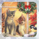 Pegatina Cuadrada Tarjetas Bonitas de Gatitos de Navidad Observando