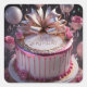 Pegatina Cuadrada Tarta De Cumpleaños Rosa Rubor Celebración