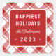 Haz que tus regalos y sobres destaquen a nuestro Pegatina de vacaciones. "Festividades más felices" se muestra audazmente en la tipografía sans-serif, mientras que su nombre familiar grava el diseño en escritura manuscrita colocada contra un overlay cuadrado redondo rojo. El fondo está recubierto de lona blanca y roja, añadiendo un toque festivo a tus regalos y paquetes.