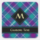 Pegatina Cuadrada Tartán verde marino, púrpura y azul