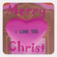 Pegatina Cuadrada Te amo, corazón de Navidad.