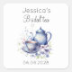Celebra a la futura novia con estas elegantes pegatinas de fiesta de té nupcial boho azul, que presentan flores de acuarela pintadas a mano y una encantadora ilustración vintage de tetera y taza de té. Los tonos pastel suaves y las flores silvestres del jardín traen un ambiente suave y romántico, perfecto para una reunión serena de té por la tarde con amigos y seres queridos.