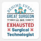 El diseño técnico quirúrgico es un regalo de apreciación divertida para los técnicos de limpieza, cirugía o sala de operaciones. Perfecto para hombres o mujeres que tienen trabajo quirúrgico. El diseño dice: "Detrás de cada gran cirujano hay un agotado tecnólogo quirúrgico"
