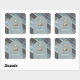 Pegatina Cuadrada Teddy Bear Boy Baby Shower Gris & Blue Plaid