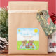 Este bonito y caprichoso pegatina cuenta con osos adorables que hacen un picnic en un trapo azul de gingham con dulces como miel, sandía, mermelada de fresa, limonada y tarta. En el fondo, un cielo azul brillante y el sol, las mariposas y las mareas. El texto combina fuentes decorativas y serif para un estilo elegante y moderno. Es perfecto para una fiesta de cumpleaños de primavera o verano.
