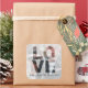 Pegatina de foto de boda moderna y simple con sus nombres y fecha de boda en caligrafía elegante y una superposición blanca translúcida con la palabra LOVE recortada. Simplemente suba su foto favorita y agregue su texto. Perfecto para regalos de San Valentín, bodas, anuncios de fecha de boda o etiqueta de agradecimiento chic para los paquetes de su negocio. Diseñado exclusivamente para usted por Happy Dolphin Studio. Si necesita ayuda o productos coincidentes, por favor contáctenos en happydolphinstudio@outlook.com.