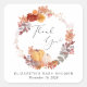 Elegante pegatina con temática otoñal para tu fiesta de la ducha de bebé favores y correspondencia con una corona rústica compuesta de ilustraciones acuarelas de calabazas y terracota y flores verdes de salvia, y "Gracias" escrito en un guión elegante con un toque de corazón. Personaliza fácilmente el nombre y la fecha de ducha de la madre en una tipografía simple.