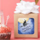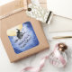 La bruja acuarela divertida que vuela sobre su escoba está lista para "brujarte" una feliz Halloween. Cielo azul acuarela, luna llena y silueta de bruja voladora. Gran pegatina para sus sobres, invitaciones y tarjetas.