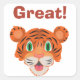 Recompensas a los estudiantes con un pegatina que presenta una cara tigre linda con una gran sonrisa, y palabras de aliento (que puedes elegir) como Grande, como se muestra. Diversión para la escuela, gráficos de tareas o cualquier momento en que quieras recompensar a los niños por hacerlo bien.