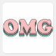 Texto de burbuja en capas OMG en color rosa melocotón, rosa coral, verde pastel y verde marino.