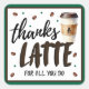 Pegatina Cuadrada Thanks a Latte Teacher Appreciation Gift