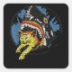 Pegatina Cuadrada Tiburón comiendo un gato obsequio de tiburón
