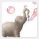 Pegatina Cuadrada tierno elefante soplando burbujas rosas