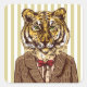 Este diseño presenta a un tigre usando una chaqueta inteligente y corbata de arco rojo.