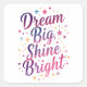 Dejen que sus ambiciones destaquen con esta cita edificante de "Sueño Grande, Brillante Brillante". Escrito en una hermosa mezcla de escritura y fuentes modernas y adornado con estrellas brillantes y coloridas, este diseño es un deslumbrante recordatorio para perseguir sus sueños y dejar que su luz interior brille. Es perfecto para cualquiera que necesite un poco de motivación y magia.