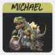 Pegatina Cuadrada Tirannosauro Rex Dinosaurio en motocicleta