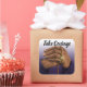 Persona que usa un suéter morado, las manos dobladas con la cruz que cuelga sobre ellos. Usa estos pegatinas inspiradores para decorar tus objetos personales.