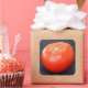 Tomate jersey fresco, rojo y maduro colocado convenientemente en un pegatina.