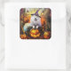 Pegatina Cuadrada Tonto Samoyed Perro Halloween Bruja Y Calabaza