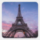 Pegatina Cuadrada Torre Eiffel en París, Francia Púrpura Rosa