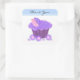 Un bizcocho morado suave con escarcha y rebanadas de frutas de caramelo encima. Un borde de color azul a rayas acentúa la palabra "gracias" Personalizar al cambiar las palabras como se desee.