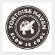 Un ilustracion digital de una tortuga en un logo circular con la leyenda Tortoise Haven Slow es Guay.
