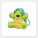 Pegatina Cuadrada Tortuga en la música con auriculares