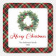 Pegatina Cuadrada Traditional Christmas Wreath Red Green Plaid Set