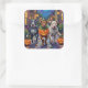 Pegatina Cuadrada Traición o truco de perros Pitbull con disfraces d
