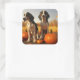 Pegatina Cuadrada Trek Walker Coonhound Puppy Autumn Calabaza